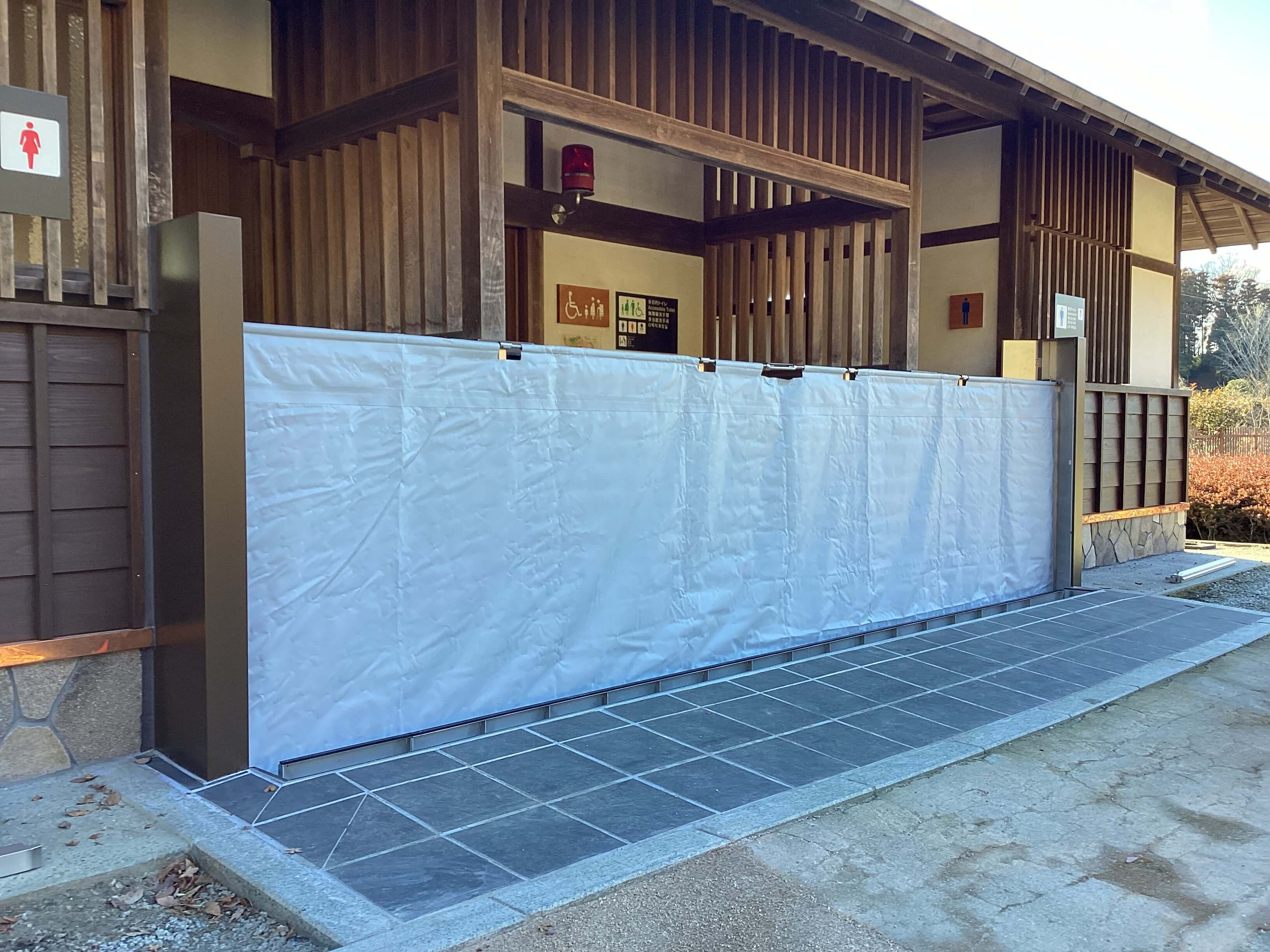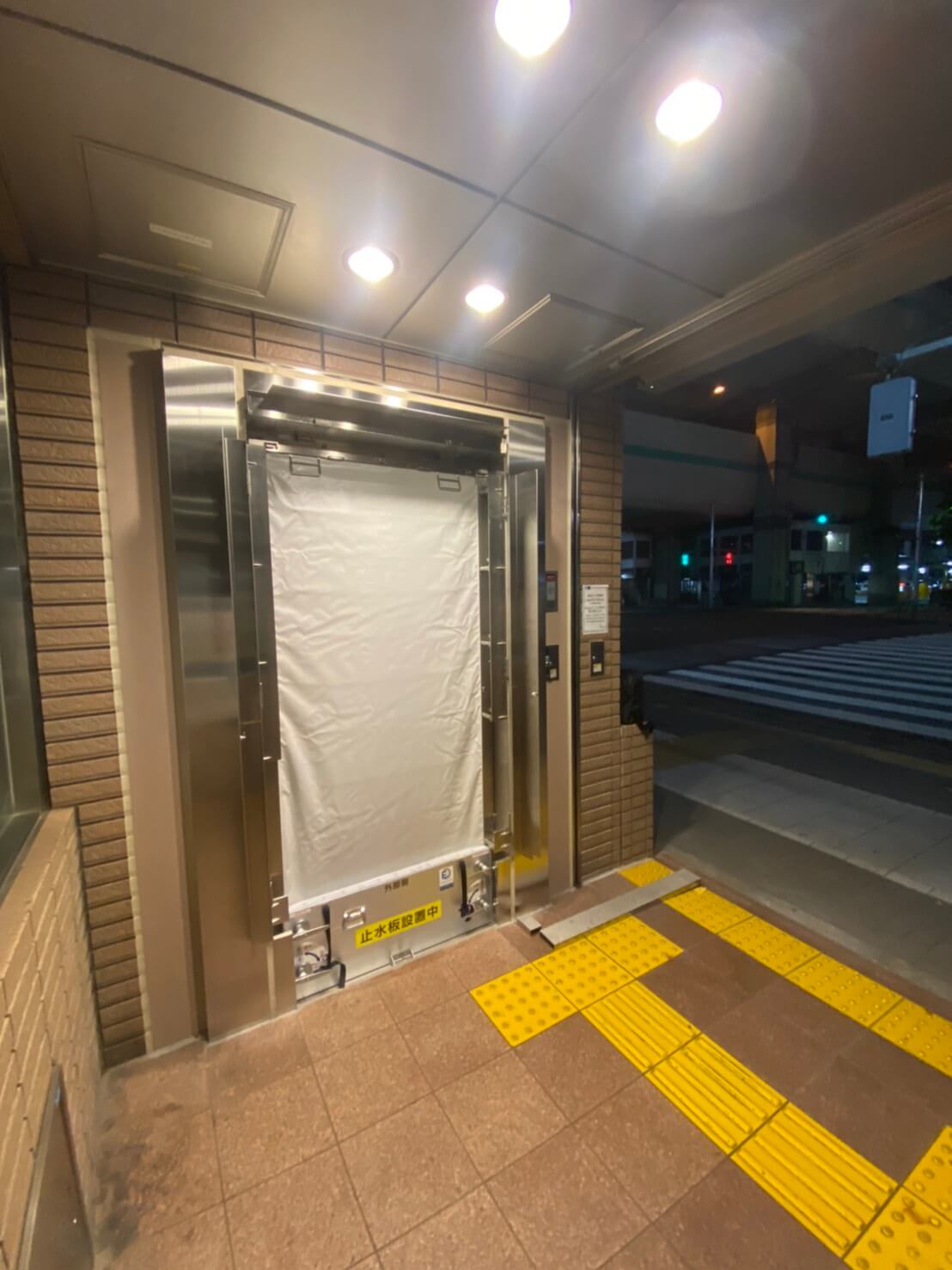 低浸水時は上部シートを丸めておくことでパネルを跨いで非難が可能