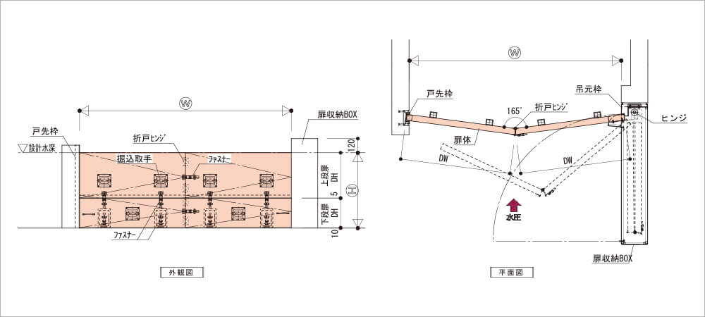 • 折戸式止水扉(3方止水)