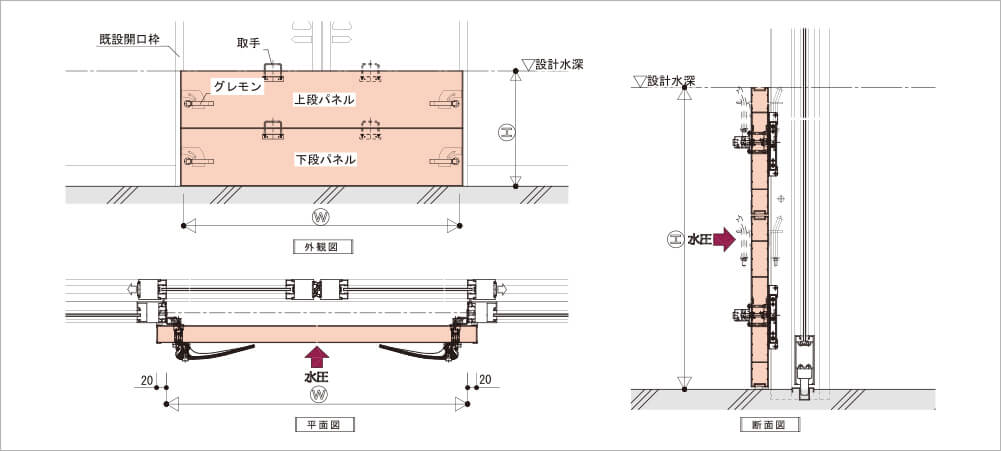 | 浸水高 | 推奨段割 | 柱間最大寸法 |
