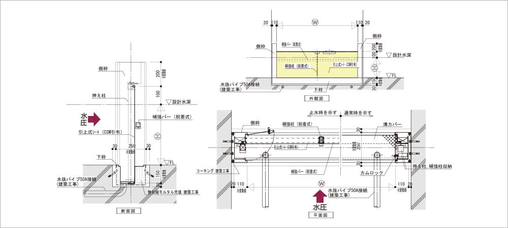 | オプション | 高さ2段階式、石張仕上(側枠・下枠溝フタ) |